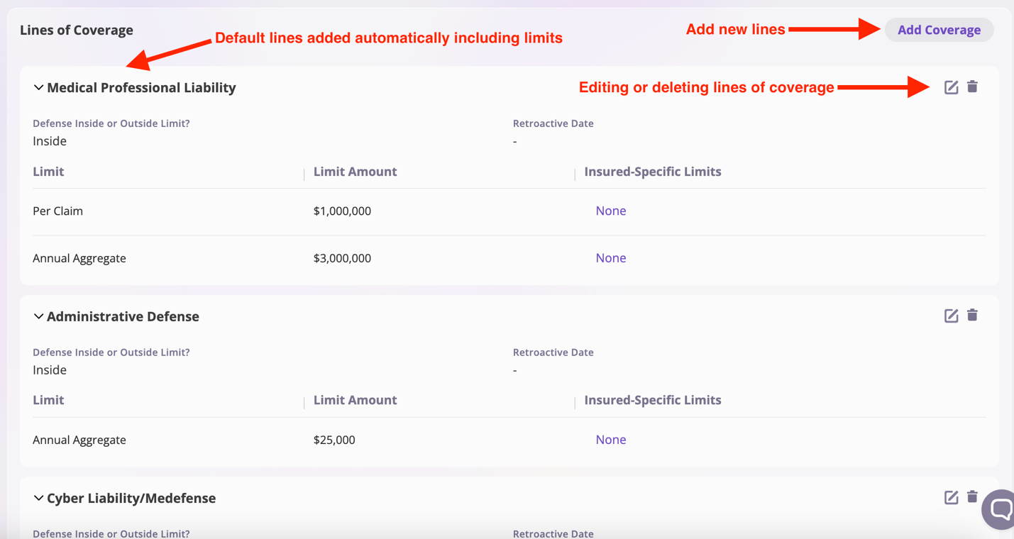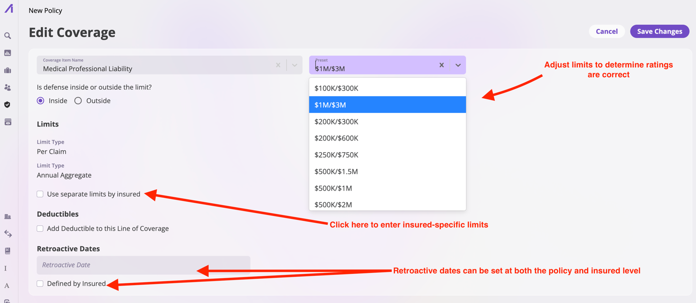 - The appropriate policy type was chosen (e.g., Claims Made vs Occurrence).