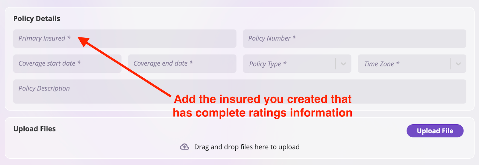 - Primary Insured/Policyholder (Choose the Insured created above)