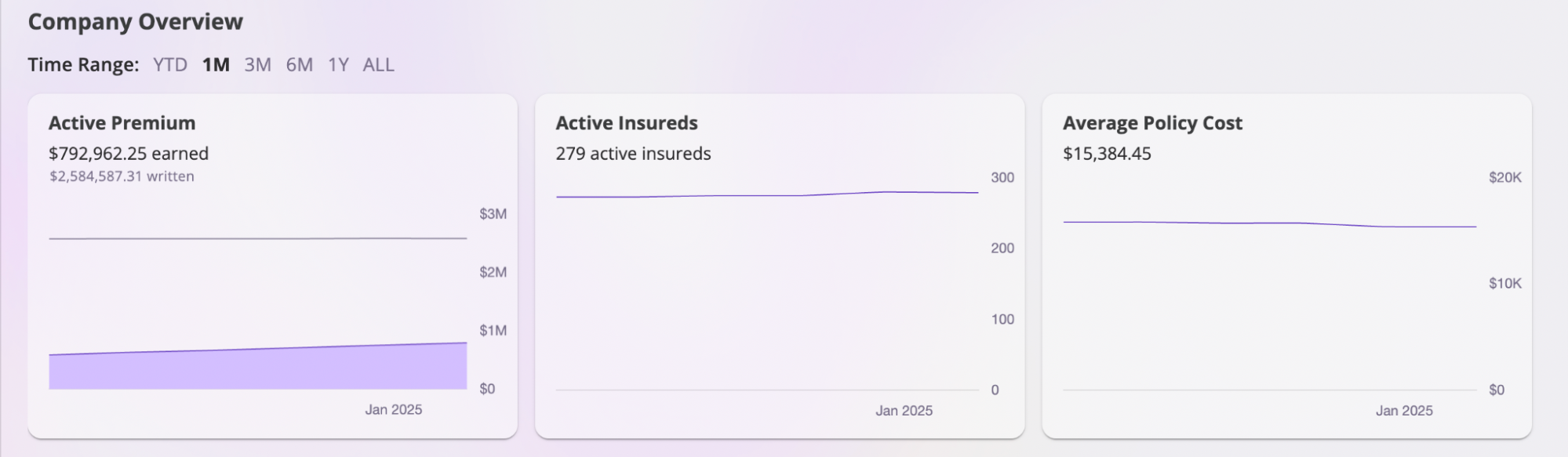 - Active Premium: This graph displays the number of active premiums issued by your organization during a specific time period. The x-axis represents time, while the y-axis shows the amount of premium issued.
