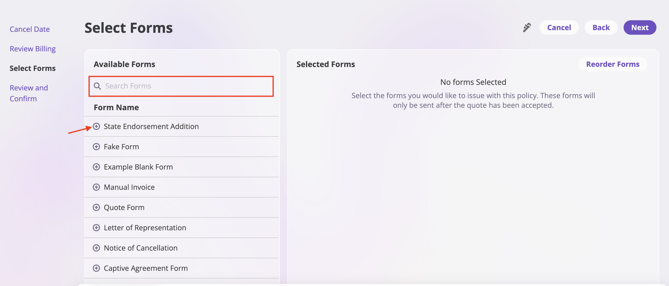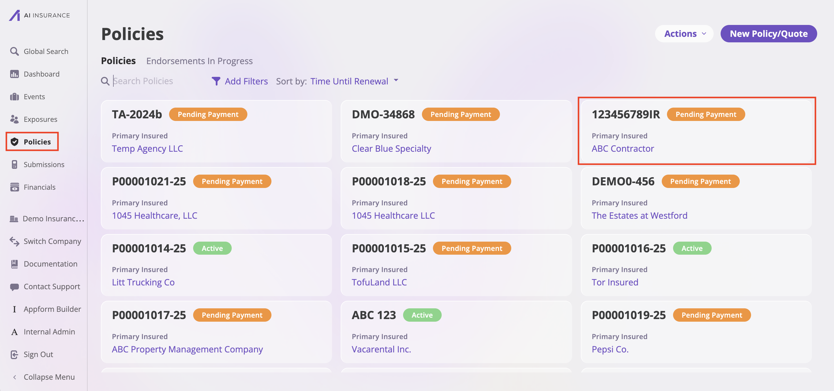 Follow these steps to cancel a policy in the system:Step 1: Navigate to the Policy