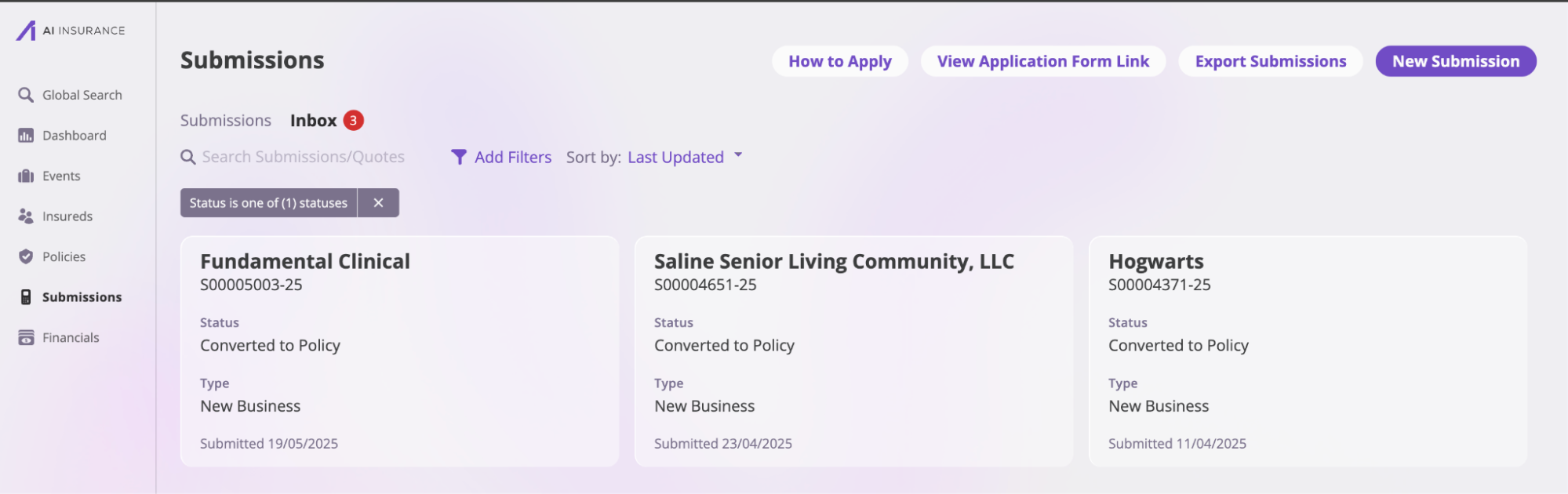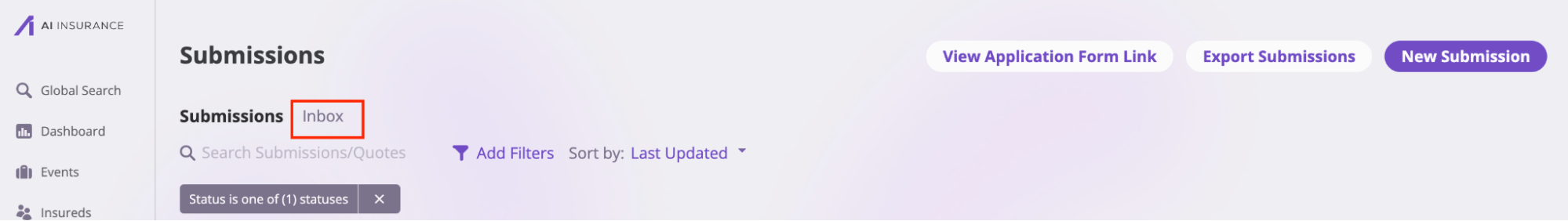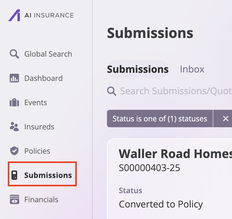 Navigate to the Submissions page by clicking the Submissions tab on the sidebar.